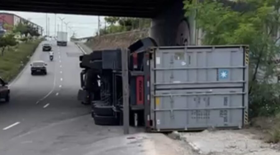 A carreta, que pertence a uma empresa não identificada, não exibia dados de contato em sua estrutura, o que dificulta a comunicação com os responsáveis. As causas do tombamento ainda estão sendo apuradas pelas autoridades.