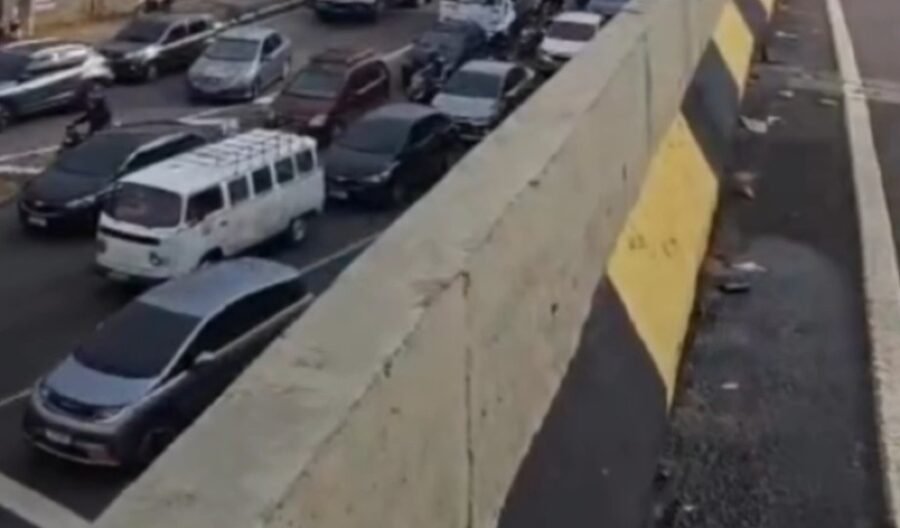 Um acidente registrado na manhã de quinta-feira (4), na Avenida Efigênio Sales, em frente ao condomínio de mesmo nome, provocou um congestionamento que paralisou a Bola do Coroado e trechos próximos, na Zona Leste de Manaus. O tráfego ficou comprometido por vários quilômetros.