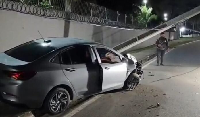 Um veículo colidiu contra um poste na madrugada da última sexta-feira (17), na Avenida Governador José Lindoso, a Avenida das Torres, na Zona Norte de Manaus.