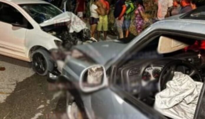 A colisão entre uma picape S10 e um veículo modelo Fox aconteceu por volta das 18h30, com impacto forte o bastante para acionar os airbags dos dois veículos.
