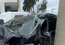 Acidente lança carro contra canteiro central na Zona Oeste de Manaus