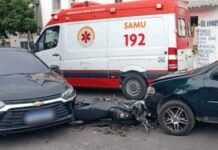 Motociclista fica gravemente ferido após colisão entre carros no Monte das Oliveiras em Manaus
