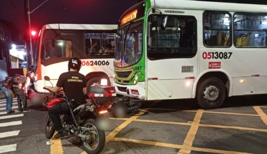 Um acidente de trânsito deixou o cruzamento das avenidas Duque de Caxias e Leonardo Malcher, na Praça 14 de Janeiro, Zona Sul de Manaus, congestionado na noite da última terça-feira (16). A batida envolveu dois ônibus do transporte coletivo e duas motocicletas, resultando em ferimentos nos condutores das motos.