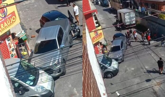 Imagens que circulam nas redes sociais mostram o momento em que moradores da região se mobilizam para retirar um dos carros que prensou a vítima contra o capô de outro veículo. A cena gerou tensão e comoção entre as pessoas que acompanhavam a ocorrência.