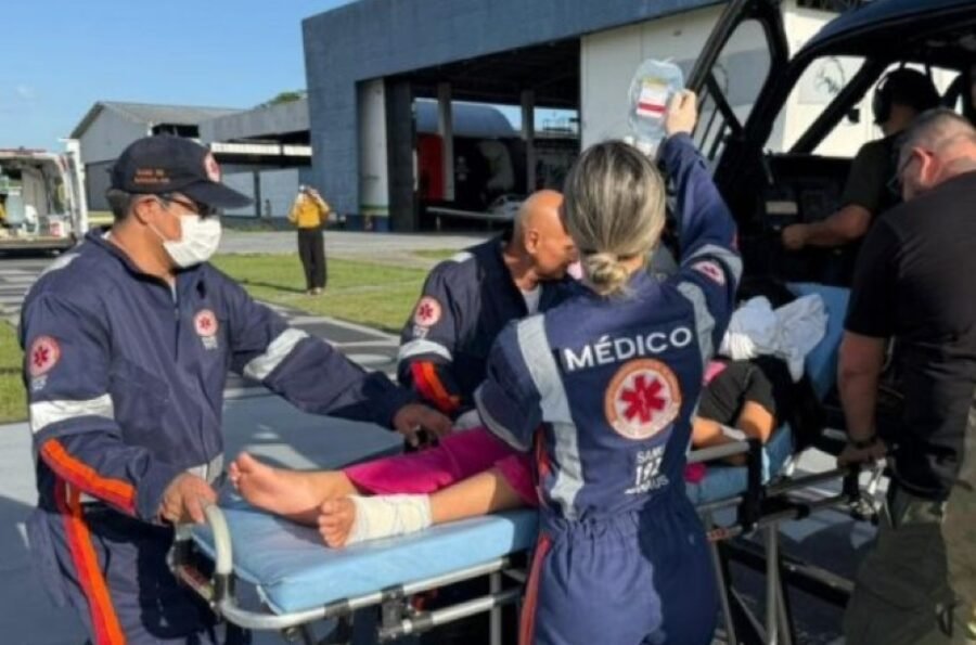 De acordo com a médica Larissa Câmara, do Samu, os primeiros procedimentos foram realizados ainda na localidade. A criança apresentava dor intensa e estava chorosa, recebeu medicação e acesso venoso antes da transferência. Após o atendimento inicial, ela foi encaminhada para a Fundação de Medicina Tropical para acompanhamento especializado.