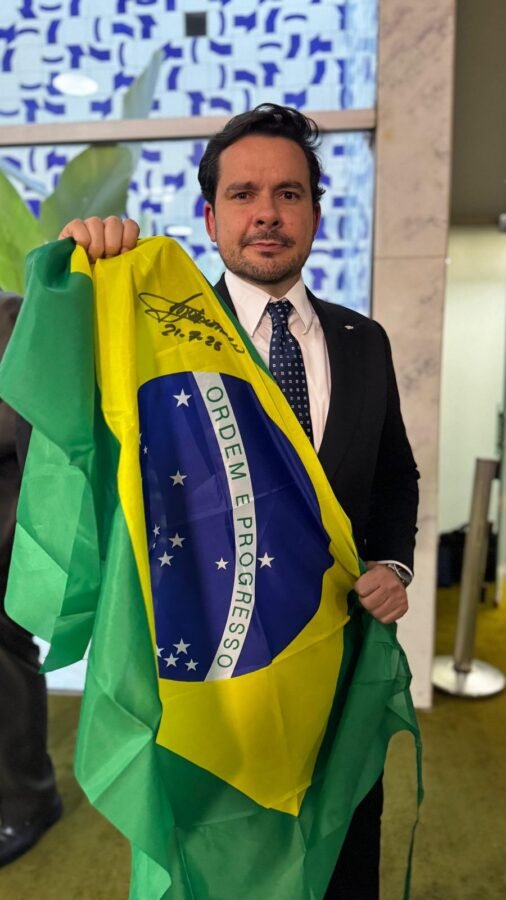 O deputado explicou que a manifestação não é partidária, é um movimento livre para todos que querem salvar o Brasil, levantando o cartaz “Fora Lula” e “Fora Alexandre de Moraes”.