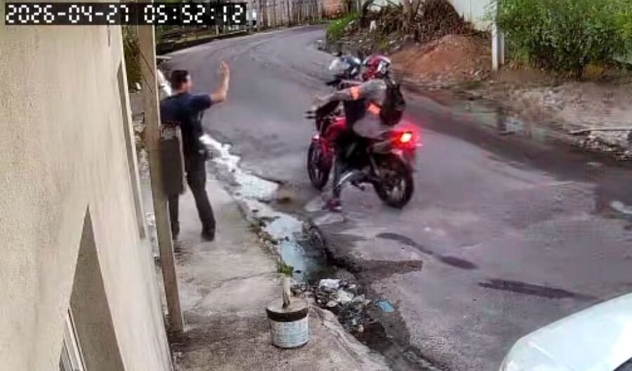 A ação foi registrada por câmeras de segurança e mostra o momento em que os dois são abordados por suspeitos em uma motocicleta, por volta das 5h50, quando saíam de casa, possivelmente para o trabalho.