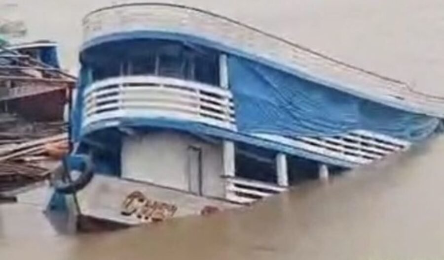 Embarcação naufraga na Orla de Manacapuru no Amazonas