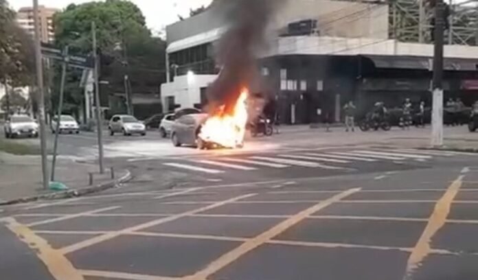 Um incêndio em um veículo causou pânico e congestionamento no início da manhã desta segunda-feira (15), no cruzamento da Rua Fortaleza com a Avenida Paraíba, no Adrianópolis, Zona Centro-Sul de Manaus.