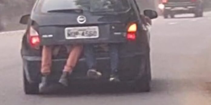 O registro, feito por um motorista que seguia logo atrás do veículo, mostra os dois indivíduos sentados no compartimento de bagagens, com as pernas para fora do carro. As imagens viralizaram rapidamente nas redes sociais, gerando revolta e preocupação entre os internautas.
