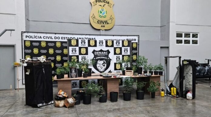 Uma operação do Departamento de Investigação sobre Narcóticos (Denarc) resultou na prisão em flagrante de Max Palheta Teixeira, de 26 anos, na Zona Norte de Manaus. Ele é suspeito de cultivar maconha em estufas mantidas em uma empresa de fachada, no bairro Colônia Santo Antônio, com a intenção de comercializar a droga.