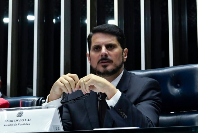 O senador Marcos do Val (Podemos-ES) foi levado nesta segunda-feira (4) pela Polícia Federal (PF) para a instalação de uma tornozeleira eletrônica. A medida foi ordenada pelo ministro Alexandre de Moraes, do Supremo Tribunal Federal (STF).