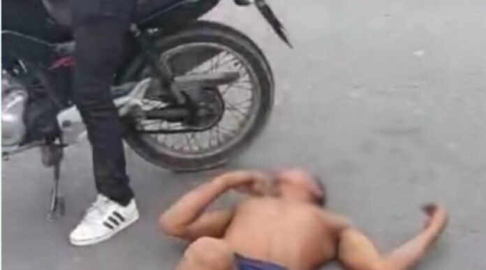 Um homem não identificado, suspeito de praticar roubos, foi agredido na manhã desta sexta-feira (8) na Rua Santa Etelvina, no Santa Etelvina, Zona Norte de Manaus. A ação foi registrada por estudantes que passavam pelo local.