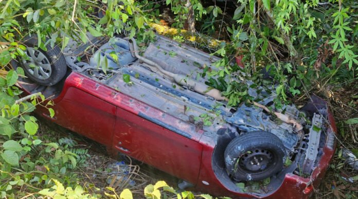 Um acidente inusitado ocorreu na manhã desta sexta-feira (25), na Avenida Solimões, no Japiim, Zona Sul de Manaus. Uma motorista, supostamente embriagada, perdeu o controle do veículo ao fazer uma curva, bateu no meio-fio e capotou em uma área de matagal próxima à via.