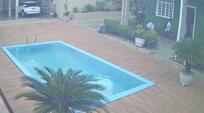 Imagens registraram o momento em que uma das vítimas conseguiu correr para fora da casa. O assaltante ainda tentou alcançá-la, mas interrompeu a perseguição e voltou para o interior da residência.