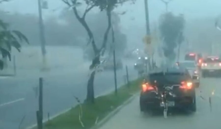 Um dos trechos mais críticos foi registrado na Avenida do Turismo, na zona oeste, importante via que liga os bairros Tarumã e Ponta Negra. Vídeos mostram a pista tomada pela água, dificultando a passagem de veículos e causando congestionamento.